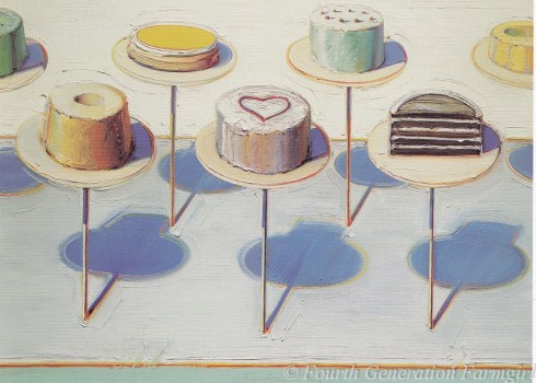Wayne Thiebaud (American, b. 1920) Rosebud Cakes, 1991-1995 oil on canvas, 40.3 x 50.8 cm (15 7/8 x 20 in.)   Wayne Thiebaud continues a tradition of painting food still lifes that harkens back to the Renaissance.  The great Dutch and Flemish food portraitists sought to represent their subjects’ varied textures with exacting accuracy, lavishly illustrating abundance and the ability […]